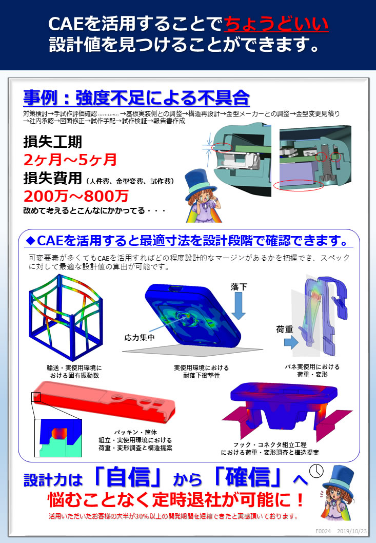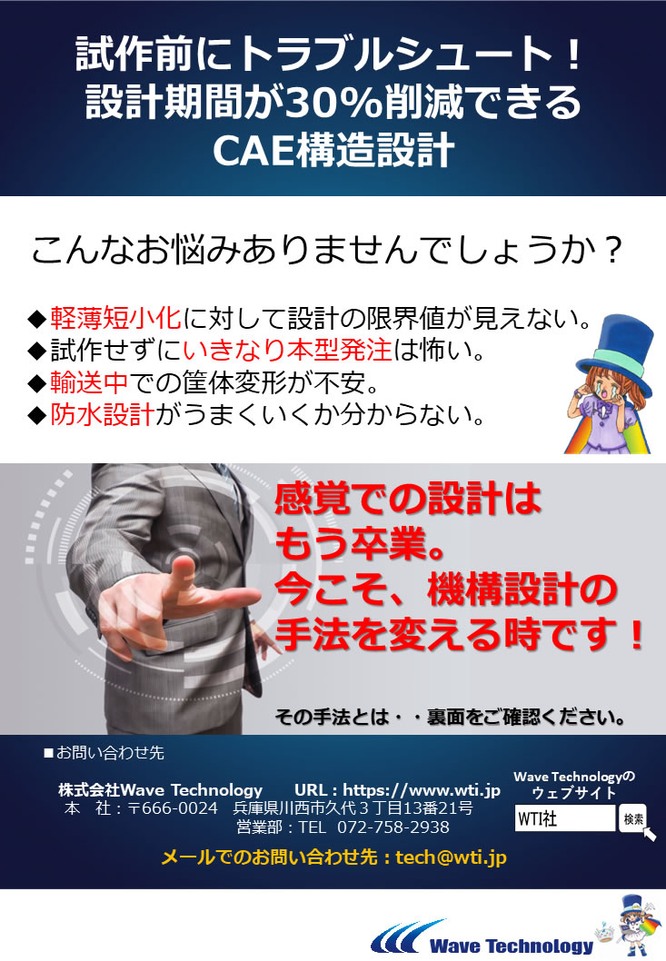 試作回数や、設計の後戻りをなくしませんか? CAEを活用することで狙うべき設計値を見つけ出すことができます! 【画像をクリックすると拡大表示します】 詳細コンテンツへのリンク |
