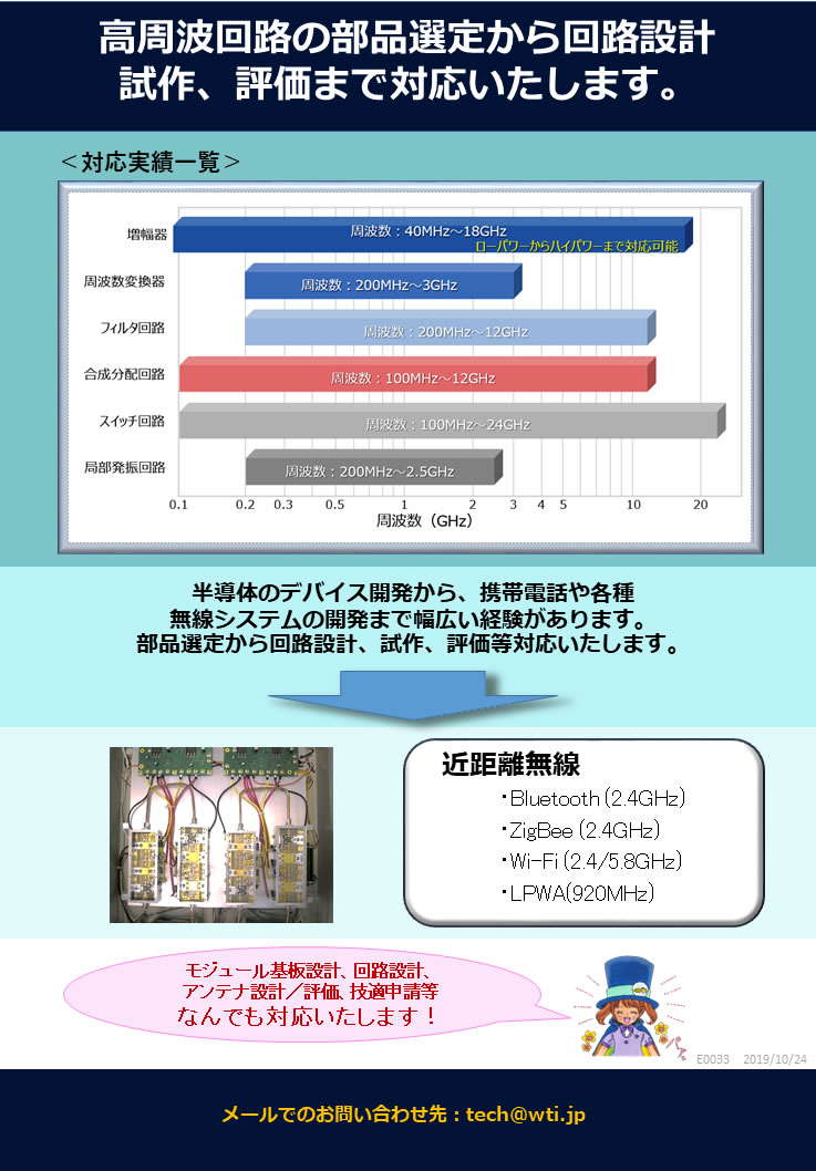 IoT製品の開発をご検討されてないでしょうか? 既存の通信規格からお客様のご要望仕様に合わせたカスタム製品の高周波設計サービスをご提供いたします。 【画像をクリックすると拡大表示します】 詳細コンテンツへのリンク |